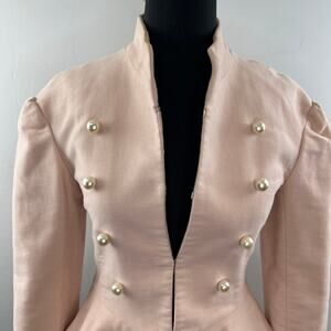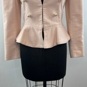 ZARA Nude Pink Velvet Peplum Pearl Jacket Cotton Cropped Mock Neck XS BLOGGER