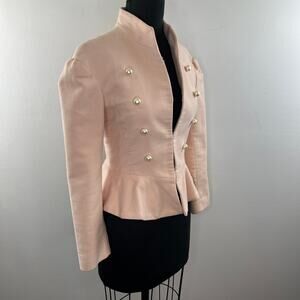 ZARA Woman Pink Peplum Pearl Jacket Cotton Cropped Artificial Beads Mock Neck XS