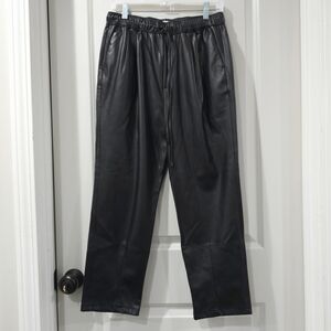 ZARA Nwot Black Faux Leather Straigh Leg Pants, Elastic Drawstring Waist, Size M