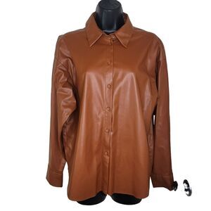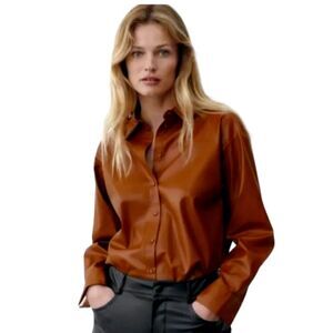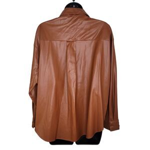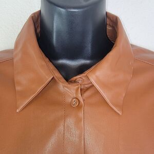 New without tags. Women's ZARA Faux Leather High Low Button Down Shirt Brown Size Large.