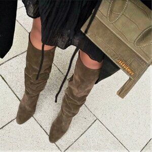 ZARA OLIVE KNEE HIGH SLOUCHY SUEDE KHAKI BOOTS