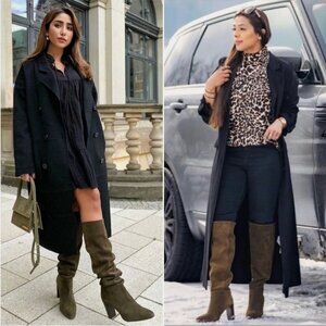ZARA OLIVE KNEE HIGH SLOUCHY SUEDE KHAKI BOOTS COW LEATHER