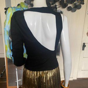 When I first found this blouse I thought why are people selling defective blouses at an estate sale i thought it only had one sleeve and then I turned it. No stains fading reats . AMAZING top from ZARA marked M one slevee only.