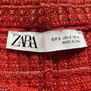 ZARA ORANGE METALLIC THREAD TEXTURED PANTS High Waist Size S