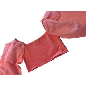 ZARA ORGANZA PUFF SLEEVE KNIT CROP TOP PINK NWOT SIZE LARGE