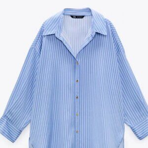 ZARA OVERSIZED BUTTON DOWN BLUE STRIPED SIZE SMALL