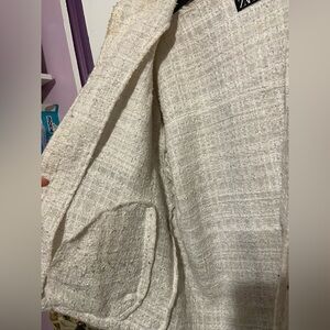 ZARA Off-White Textured Tweed Button-Up Jacket – Size M