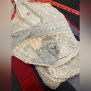 Chic and cozy, this Zara jacket adds effortless elegance to any outfit. Made in a gorgeous off-white textured tweed, it’s perfect for layering during cooler months or dressing up a casual look.