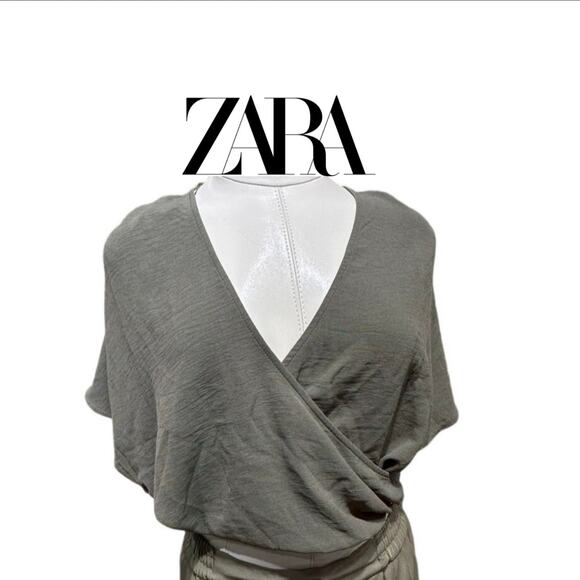 ZARA Olive Green Draped Wrap Front Blouse - Effortlessly Chic & Flattering Fit