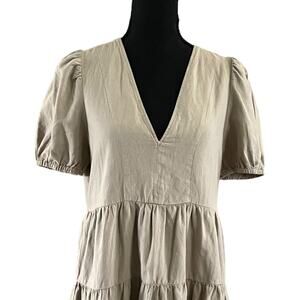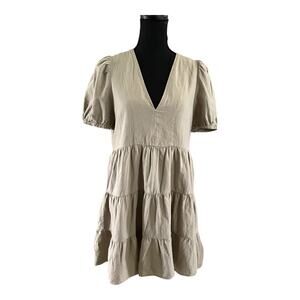 ZARA Olive Green Tan V Neck XS Comfortable Classic Babydoll Dress