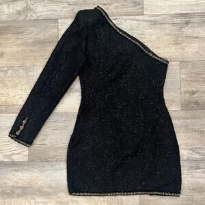 ZARA One Shoulder Textured Metallic Mini Dress NWT — Size M Black