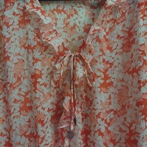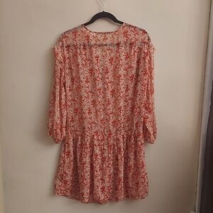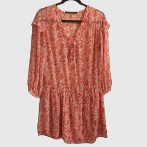ZARA Orange Floral Drop Waist Ruffle Lightweight Boho Dress