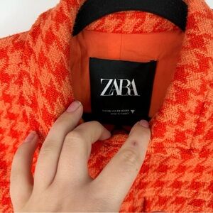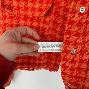 ZARA Orange Houndstooth Cropped Tweed Jacket