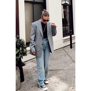 ZARA Oversized Boyfriend Blazer Gray Double Breasted Quiet Luxury Jacket XL