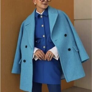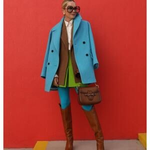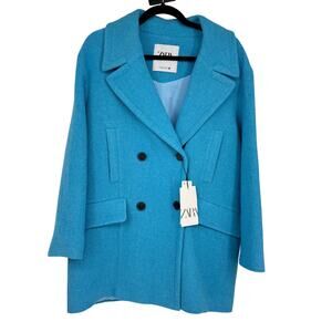 ZARA Oversized Double Breasted Coat Turquoise NEW with Tags Size Medium Blogger
