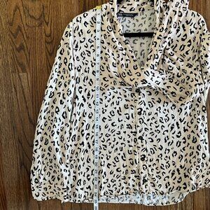 ZARA Oversized Leopard Animal Print Satin Tie Neck Blouse Top Shirt Sz M