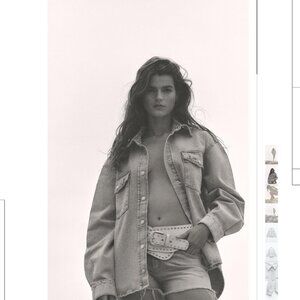 Add a touch of effortless style with this ZARA oversized denim shirt in a light wash, available in size XS-S. Featuring a classic button-down front and dual chest pockets, this piece is both functional and fashionable. The relaxed fit and soft denim make it perfect for layering over tees or pairing with jeans for a chic, laid-back look. Finished with a rounded hem and structured collar, this versatile shirt is an essential addition to any wardrobe, ideal for casual outings or adding a cool edge to your ensemble.