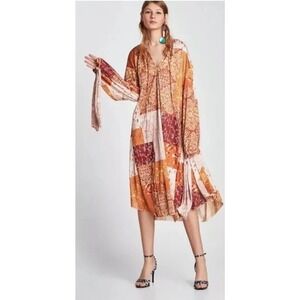 ZARA Oversized Patchwork Kaftan Boho Dress Size Medium