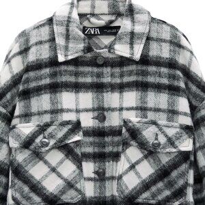 ZARA Oversized Shacket Wool Blend Black & White Plaid Small (Fits Large)