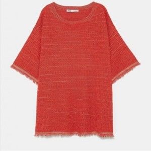 ZARA | Oversized Viscose Red Tweedy Top