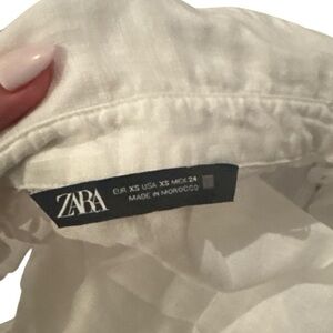 ZARA Oversized White Linen Button Down Shirt Sz XS Summer Lightweight Neutral