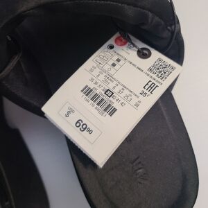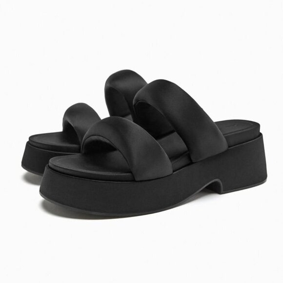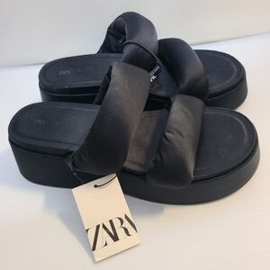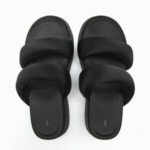ZARA PADDED STRAP FLATFORM SANDALS BLACK SIZE 8 | 1344/110