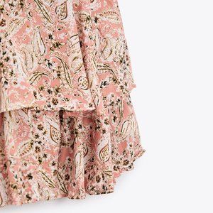 Brand New & Unworn ZARA PAISLEY RUFFLE SKIRT Pink / Multi / Ruffle