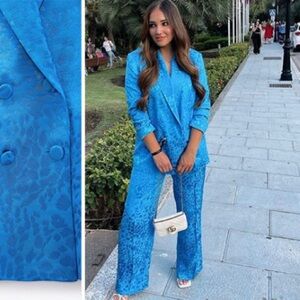ZARA JACQUARD BLAZER SIZE S AND WIDE LEG JACQUARD PANTS TURQUOISE SZ M