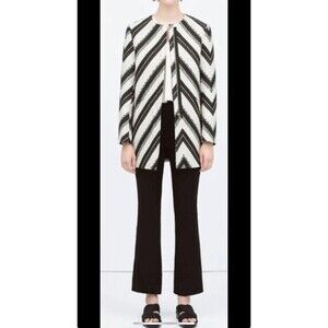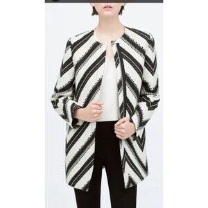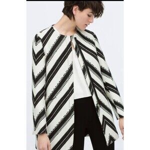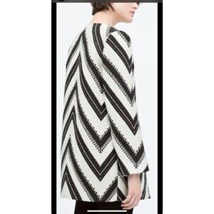 ZARA PATTERNED BLACK AND WHITE FABRIC CREW NECK COAT WOOL SIZE XS
