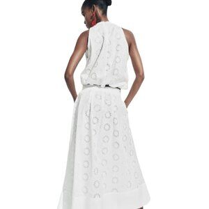 ZARA PERFORATED EMBROIDERY MIDI SKIRT OYSTER WHITE SIZE L | 7576/979