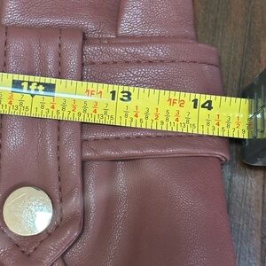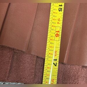 This cute pleated skirt features a adjustable belt, pockets, zip - up, gold tone accents, ruffle waist, pleated, faux leather , polyester lightweight material, western , cowboy vibe look. Super cute for concerts , bachelorette parties , Nashville nights ! Please see measurements.