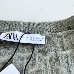 ZARA KNITWEAR | POINTELLE KNIT SWEATER Oversized Green Marl XS/S.