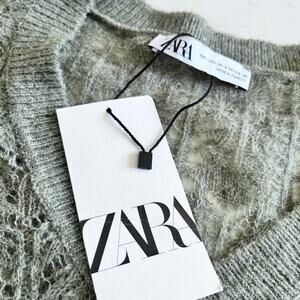 ZARA POINTELLE OPEN KNIT SWEATER Oversized Green Marl XS/S. NWT