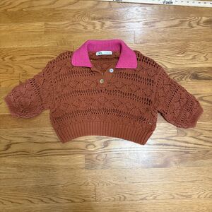 ZARA POINTELLE crop top terracotta Small 424
