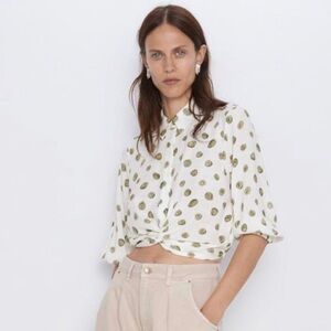 ZARA POLKA DOT PRINT SHIRT WITH FEONT KNOT SIZE S