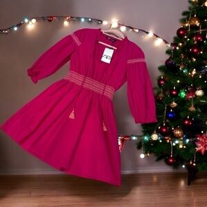 ZARA POPLIN DRESS WITH CONTRAST ELASTIC TRIM Pink NWT Woman’s si XS