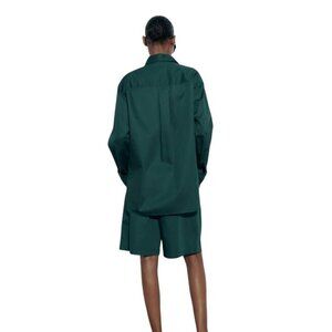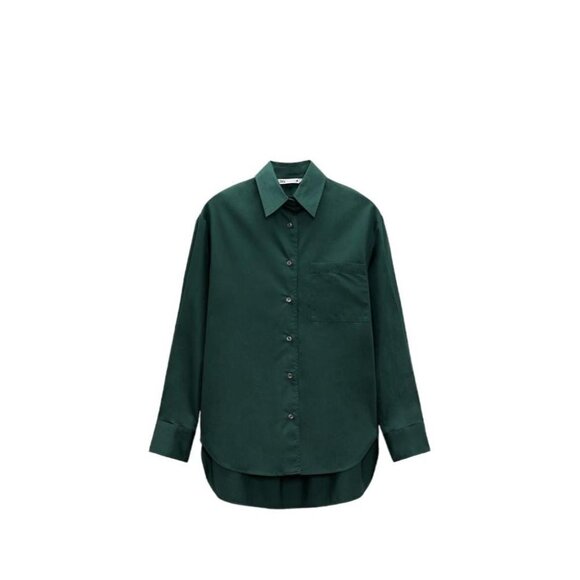 ZARA POPLIN SHIRT WITH ASYMMETRICAL CUT BLUE-GREEN SIZE L | 2246/335