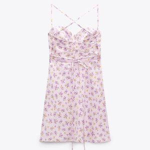 ZARA PRINTED LINEN BLEND DRESS MAUVE SIZE S | 8342/206/612