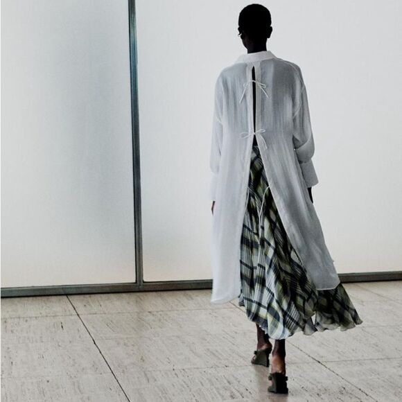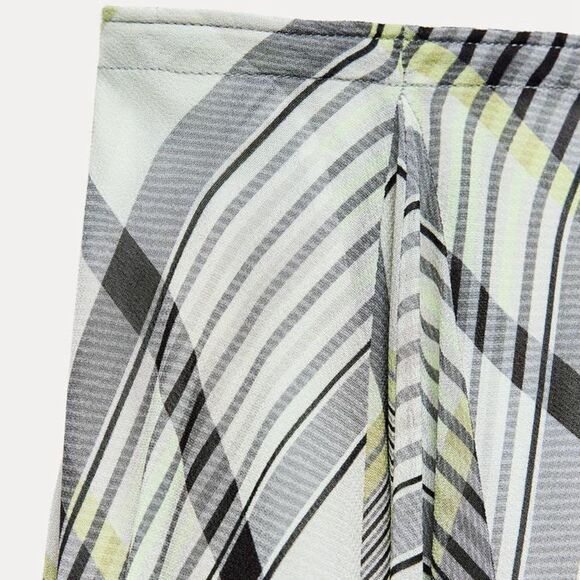 ZARA WOMAN COLLECTION Midi skirt with a high waist made of 100% viscose. Pleated waist. Asymmetric A-line silhouette. Hidden in-seam zip closure. Green/ecru OUTER SHELL 100% viscose LINING 100% polyester