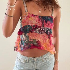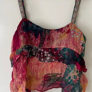 ZARA, COLORFUL RUFFLE TOP, TIE-DYE, MULTICOLOR PRINTED, SIZE S