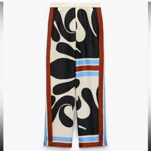 ZARA PRINTED SATIN EFFECT PALAZZO TROUSER PANTS $119