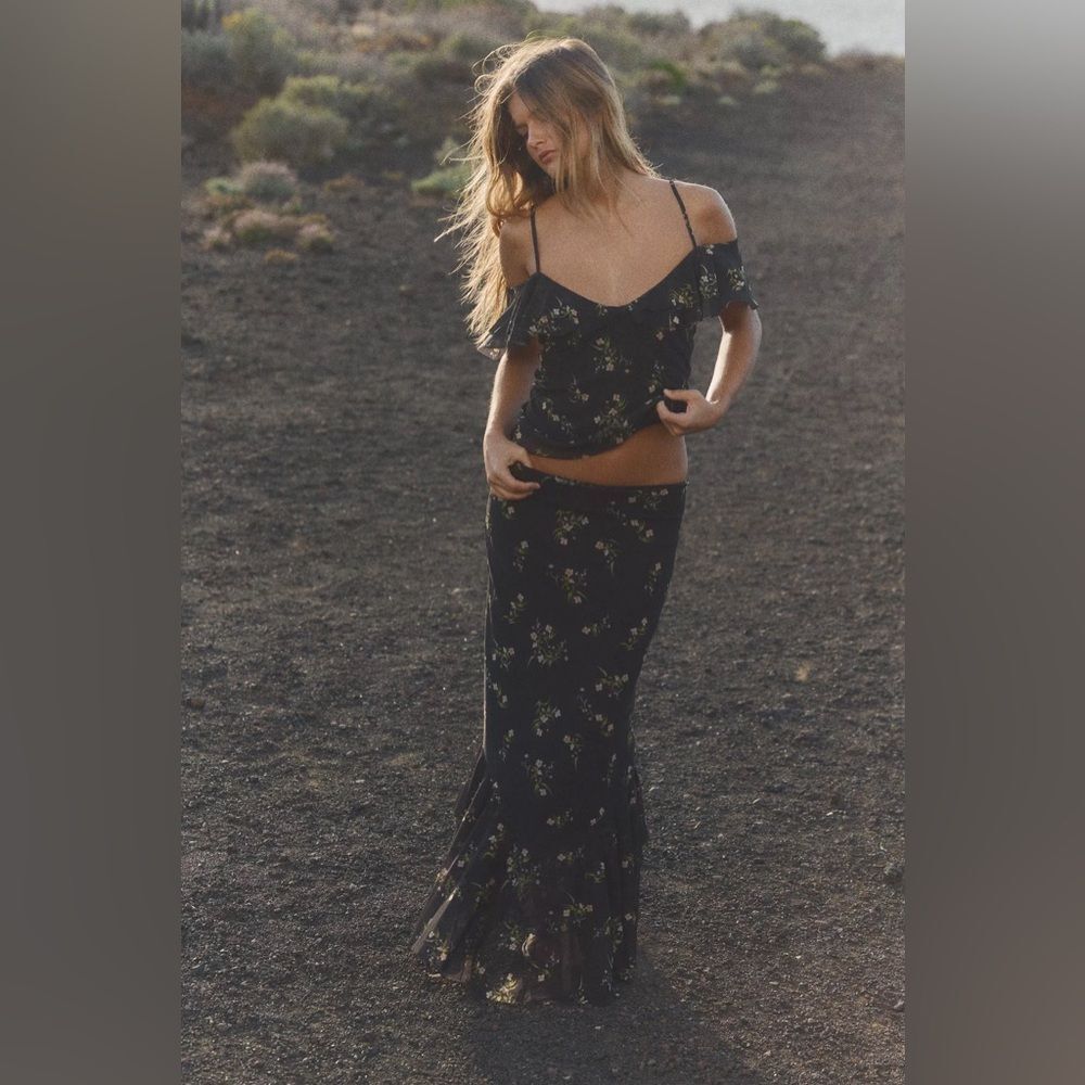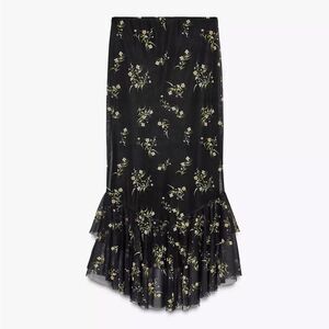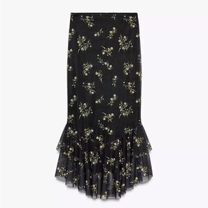 ZARA PRINTED TULLE RUFFLE SKIRT