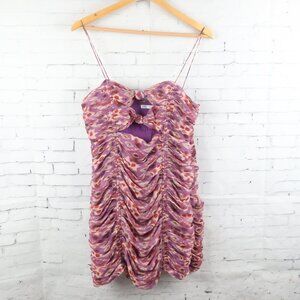 ZARA PURPLE PEACOCK FEATHER PRINT SPAGHETTI STRAP RUCHED MINI DRESS SIZE MEDIUM