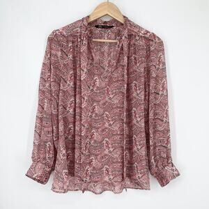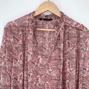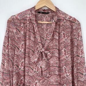 ZARA Paisley Metallic Neck Bow Pussybow Blouse, Pink
