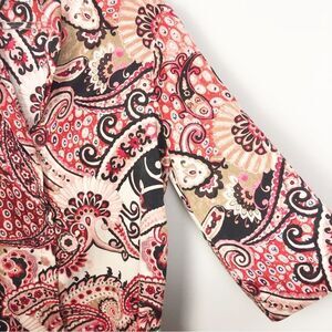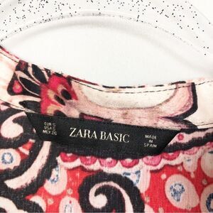 Super unique tunic top by Zara! V neck. Wide 7/8 length long sleeves. Side slits. Paisley print in creams, black, reds, and pinks. Good preowned condition. Womens size small.