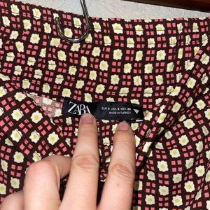 ZARA Palazo Pants Flowers Red and Yellow Adjustable Size Small