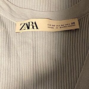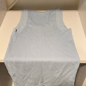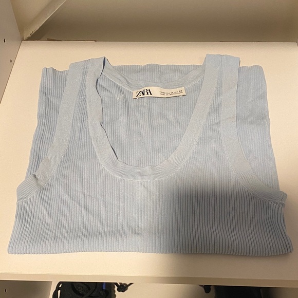Pale blue ribbed tank top from ZARA. Scoop neckline and sleeveless cut. Soft textured knit for everyday wear. Easy to pair with casual outfits.