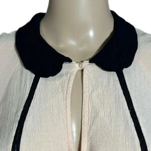 ZARA Pale Pink Peasant Blouse Black Collar Key Hole Detail Long Sleeve Medium