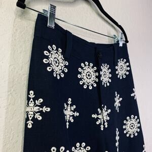 ZARA Pants Small Linen Blend Culotte Embroidered Wide Leg Cropped Boho Trousers