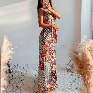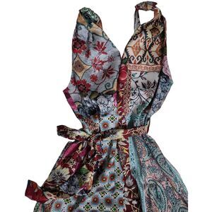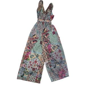 ZARA Paparazzi Patchwork Floral Geometric Belted Multicolor Jumpsuit Size S